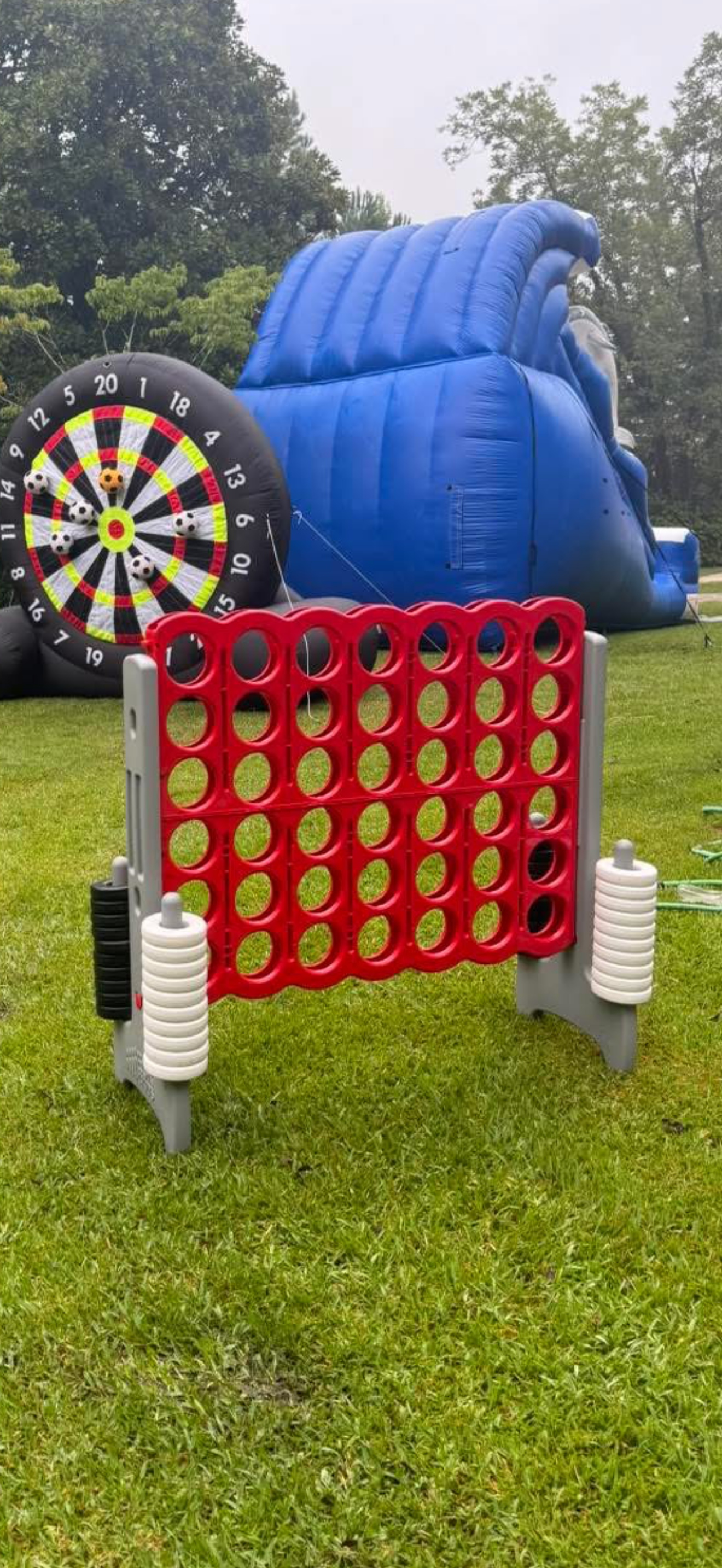 Our Gaint Yard Games include Giant Jenga, Giant Connect 4, Giant Soccer Dart Board, Giant Tic-Tac-Toe and many others. Call for more Info.