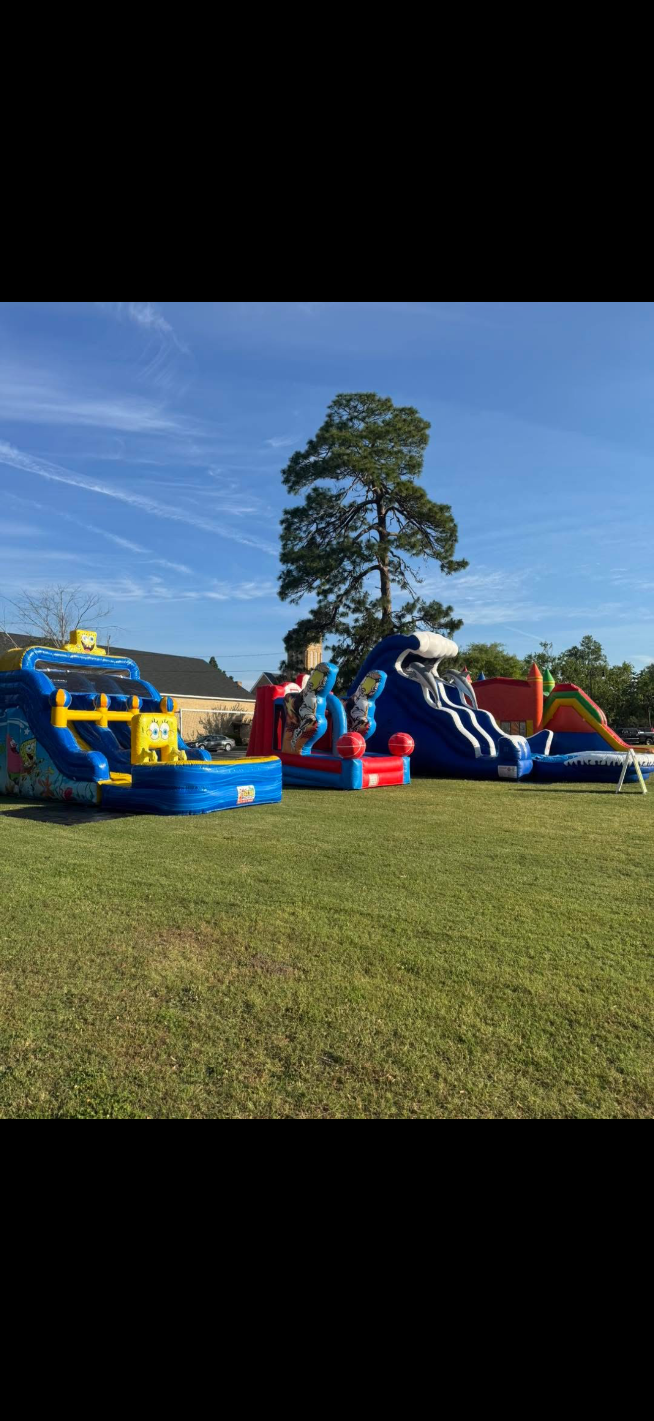 Our 24 foot tall Dolphin Slide is always a blast for kids and adults. This slide can be used dry or wet and does have a pool and water jets that can be attached at no additional cost. Price includes delivery and setup within 30 miles of White Lake NC.